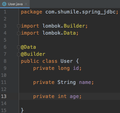 我们可以看到,实体类User中就是用了 lombok的两个注解 @Data和@Builder,有了这两个注解,我们的实体类,就变得清爽很多了~