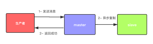 当生产者将消息发送到broker的master节点时,会直接返回一个发送成功的状态响应,并不会等待复制动作的结束,消息可靠性不够高,因为可能会出现网络抖动,导致复制不成功,消费者消费消息不及时的情况