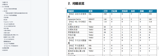 批量巡检类:该类型巡检报告适用于数据库体量大的特定场景下,批量对所有数据库的核心指标进行统计和排序,快速定位出性能最差的部分数据库,方便进行针对性处理。批量巡检类报告分为三种:问题报表、巡检汇总报表、汇总报表。