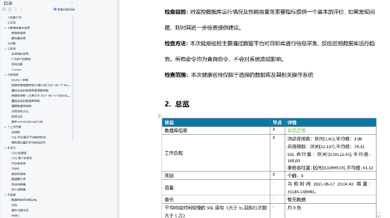 详细巡检类:当运维人员需要详细检查某些库健康状况时,整体环境巡检已经不能满足实际的运维巡检需要,这时就需要详细巡检类的报表针对单个库的各个维度深入分析。详细巡检类报表包括巡检报表等报表。