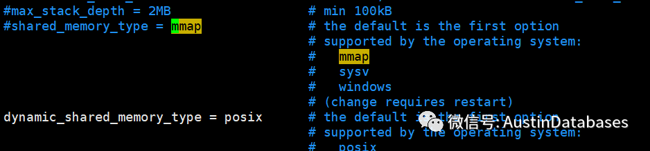 从POSTGRESQL V12 后添加了一个关于内存的参数 shared_memory_type