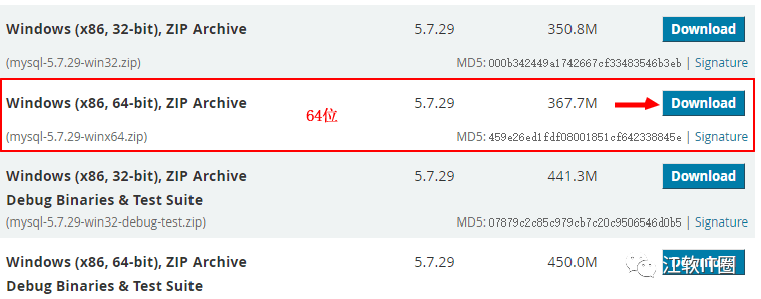 如果用户需要使用免安装的 MySQL,可以在官方网站下载免安装的 MySQL 压缩文件,如图 6 所示。