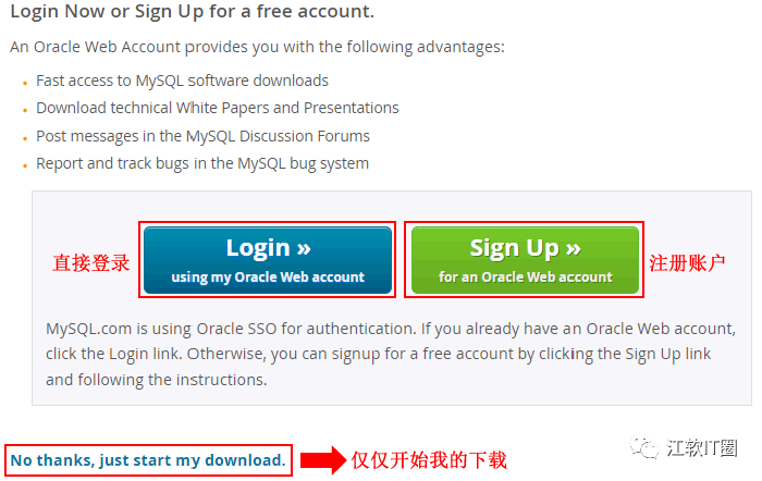 点击 Download 后进入下载页面,该页面需要注册 MySQL 账户,也可不进行注册,直接下载,如图 7 所示。