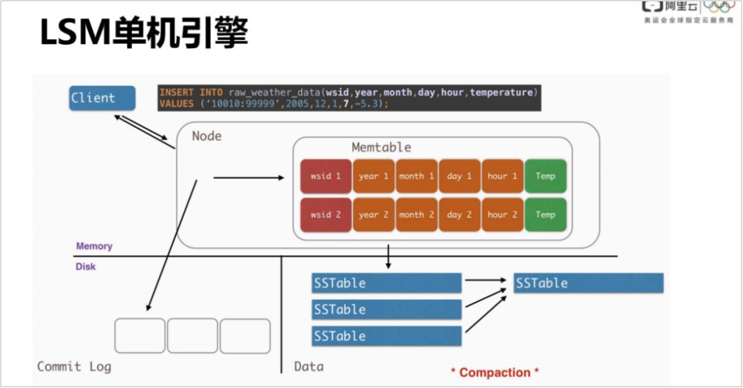 LSM 单机引擎现在已经不是一个很新的概念了,这里简单介绍一下:客户端按照一个 cql 写进来,在 Cassandra 里面这个叫做 replication,就是一次写。Cassandra 只能保证一次读和一次写是原子的,但是读跟写组合起来并不能保证是原子的。还有 cache 的操作,属于高级功能了,一次写写到后端的节点 ( node ) 里面,会先追加写 WAL ( Write-Ahead-Log ),然后会到 memtable 里面,当然里面有很多的优化,比如使用 memtable 这种方式,避免用户内存和 cornal space 内存的拷贝。