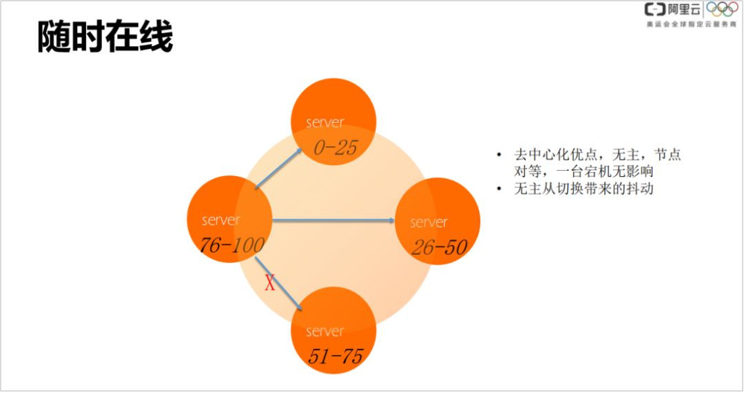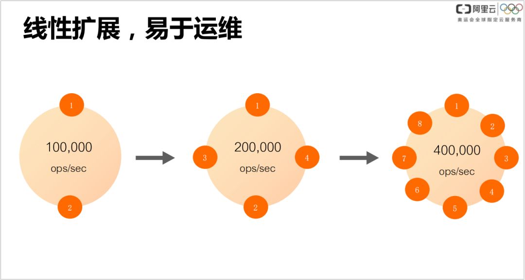 由于节点对等,可以进行线性扩展,因此非常易于运维。当集群扩展时,直接加一台机器就好了,绝大多数步骤都可以自动完成。因此很多公司都把商标做成一个环了,代表是可线性扩展的。