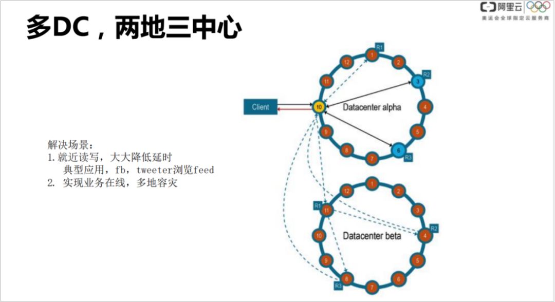 就近读写,大大降低延时。比如有个国际化的业务,在中国和国外皆有分布,比如 FB 的图片社交业务,国内和国外的用户都会发图片动态,我会关注国外朋友的图片动态,通过多 DC 可以就近读写,读的延时是很低的。