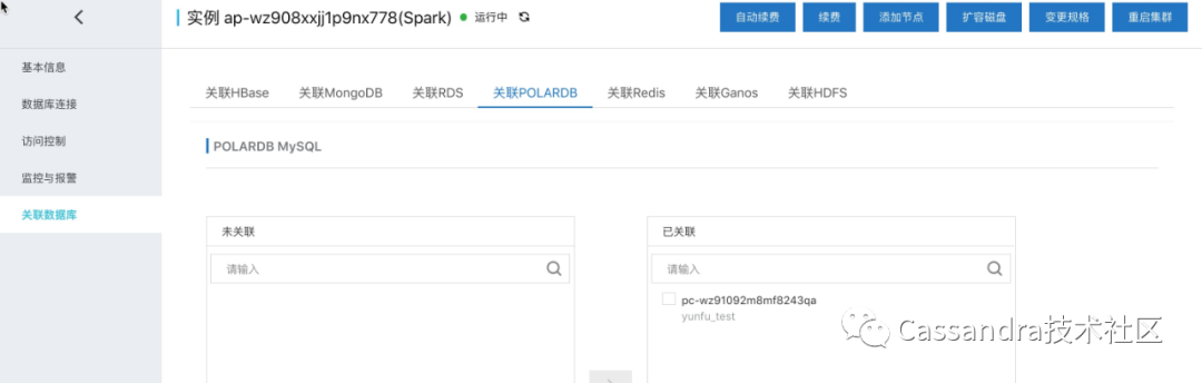 一键关联主要是做好spark访问RDS& POLARDB的准备工作。