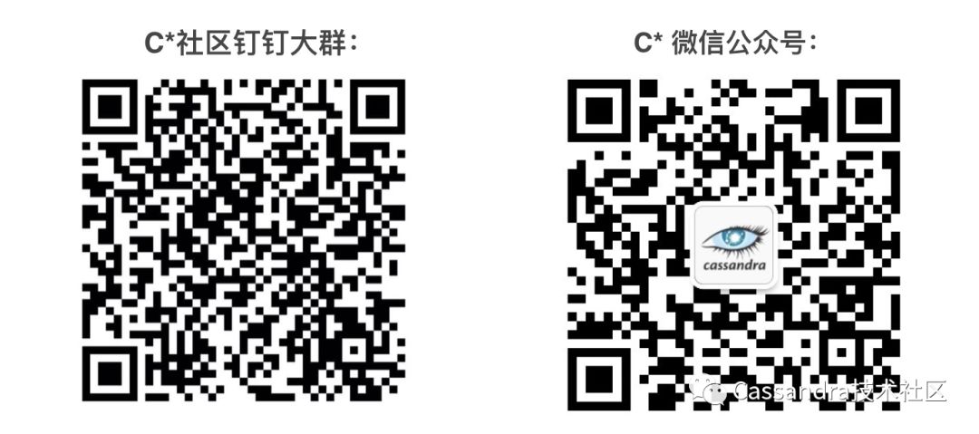 为了营造一个开放的 Cassandra 技术交流环境,社区建立了微信群公众号和钉钉群,为广大用户提供专业的技术分享及问答,定期开展专家技术直播,欢迎大家加入。另外阿里云提供免费Cassandra试用:https://www.aliyun.com/product/cds
