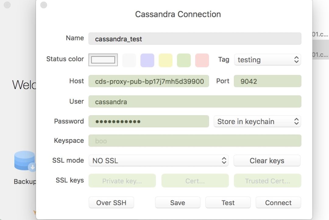 但,用习惯了数据库操作管理工具的同学还是希望可视化的界面。本文以 阿里云Cassandra为例子,推荐使用下 https://tableplus.com/ 数据库管理工具(笔者及社区跟tableplus没有任何商业关系,纯粹推荐),另外,阿里云的DMS后续也会支持阿里云Cassandra,敬请关注。