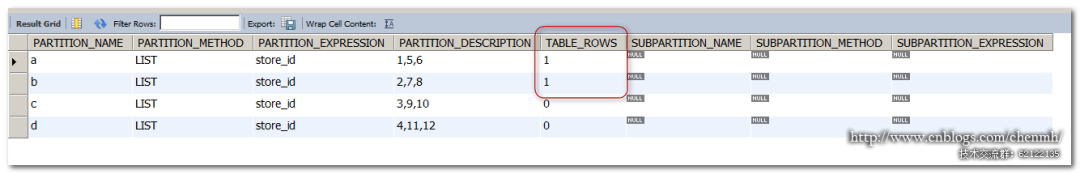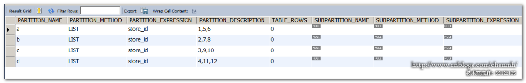 FROM information_schema.PARTITIONS WHERE TABLE_SCHEMA=SCHEMA() AND TABLE_NAME='tblist';