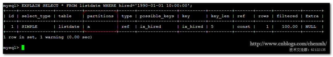 EXPLAIN SELECT * FROM listdate WHERE hired='1990-01-01 10:00:00';