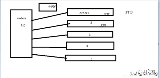 一张一亿的订单表,可以分成五张表,这样每张表就只有两千万数据,分担了原来一张表的压力,分表需要根据某个条件进行分,这里可以根据地区来分表,需要一个中间件来控制到底是去哪张表去找到自己想要的数据。