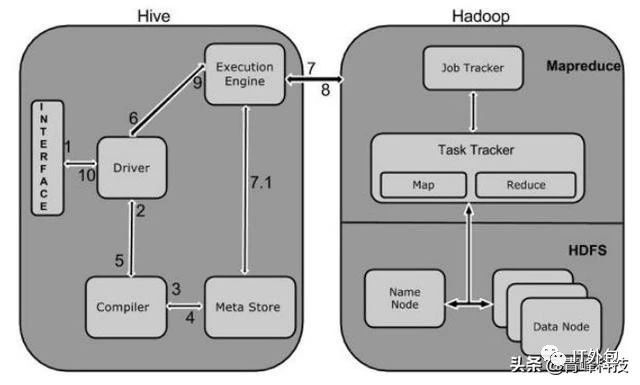解释器、编译器、优化器完成 HQL 查询语句从词法分析、语法分析、编译、优化以及查询计划的生成。生成的查询计划存储在 HDFS 中,并在随后有MapReduce 调用执行。