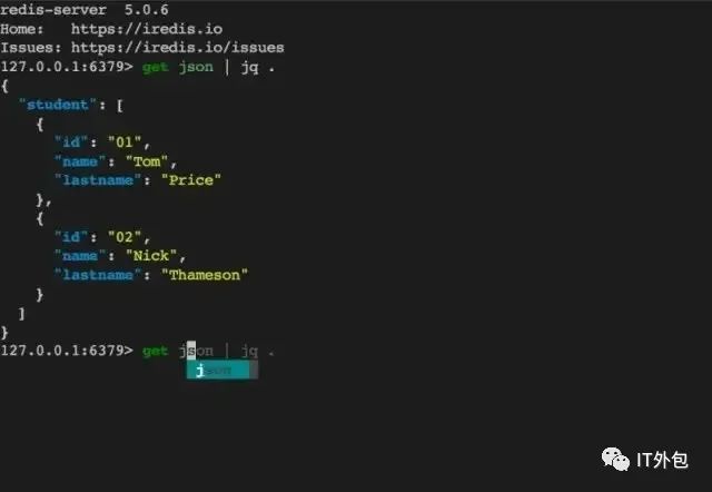 大佬朋友说:谁说命令行就不能格式化 json 了?可以利用 iredis,用|将 redis 通过 pipe 用 shell 的其他工具,比如jq/fx/rg/sort/uniq/cut/sed/awk等处理。还能自动补全,高亮显示,功能很多
