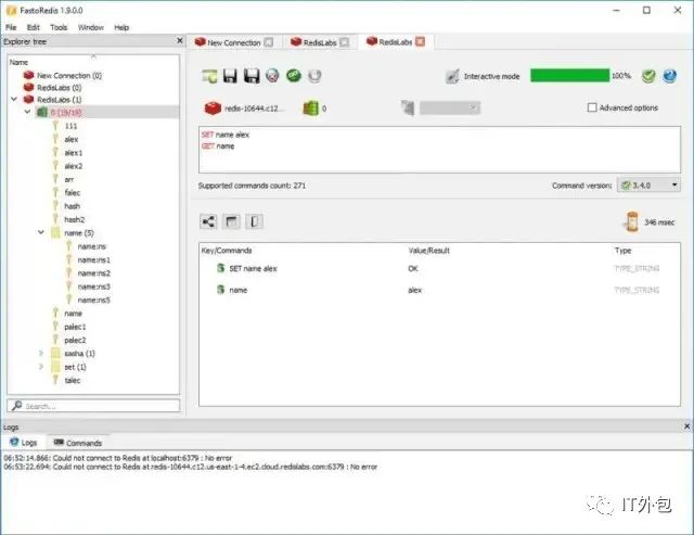 评测:毕竟是收费软件,虽然界面一股浓浓的 windows 风格,乍看上去有点像 redis desktop manager,但是就功能而言。确实不错,支持了集群模式和哨兵模式,key 的命名空间展示,redis 5.0 的 stream 数据类型也支持。命令行模式支持自动提示补全