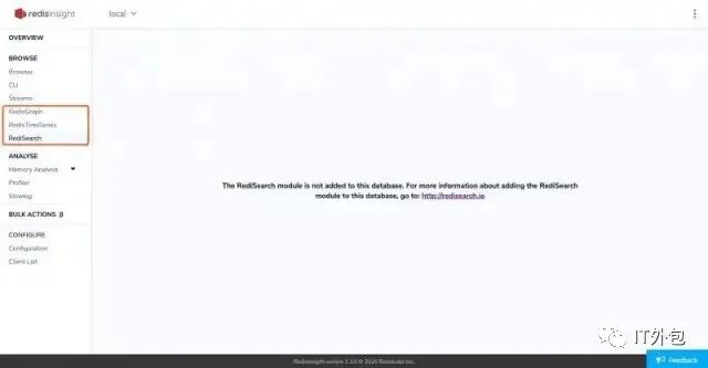 除了有命令补全提示,右边还有相关命令的文档解释。怎么样,是不是超人性化呢?同样支持 redis 5.0 的 Stream 数据类型下面的三个功能,是需要在 server 端安装他们家的其他 redis 模块的。分别是可查询的图表,redis 的时间序列展示和全文本查询功能。