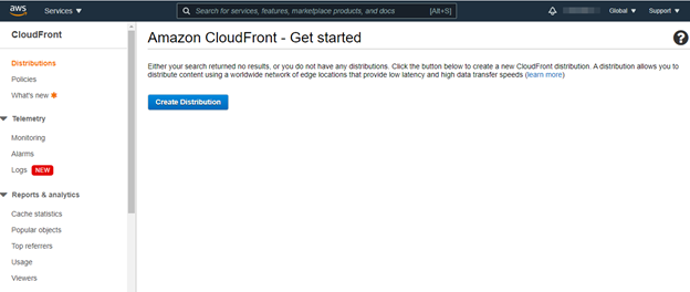 如果纽约有一个用户想建一个网站(比方说展示新冠疫情的网站),为了加快访问速度,这个用户可以这个网站托管在北佛吉尼亚区域,并把图片和 GIF 等静态网站内容部署在北美的 CloudFront中。当有人访问该网站时,内容会从尽可能靠近他们的位置分发给他们,也就是从北美分发。