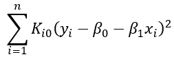 2. 给这个区域内每个点分配权重K_i0=K(x_i,x_0)。越靠近x_0,权重越高。越远离x_0,权重越低。最远的点权重为0。