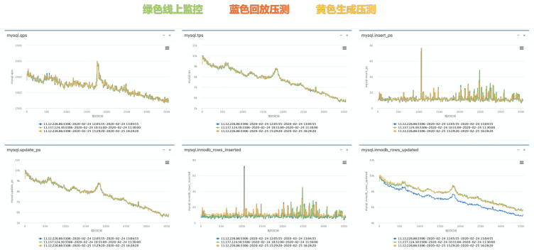 图4是我们对于钉钉一个读写业务在早高峰期的流量生成压测,可以看到流量生成压测和真实业务在多个指标上都有相似的表现,证明生成的数据可以有效的模拟线上真实数据。