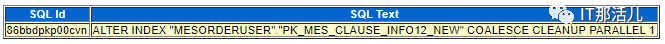 ▼▼▼################################################################删除MESORDERUSER.MES_CLAUSE_INFO##################################################################################set line 200 pages 2000col TABLE_OWNER for a20col TABLE_NAME for a30col INDEX_NAME for a50col COLUMN_NAME for a30select table_owner,table_name,index_name,column_name,column_position from dba_ind_columns where table_name = upper('MES_CLAUSE_INFO') and table_owner='MESORDERUSER' order by 3,5;TABLE_OWNER TABLE_NAME INDEX_NAME COLUMN_NAME COLUMN_POSITION-------------------- ------------------------------ -------------------------------------------------- ------------------------------ ---------------MESORDERUSER MES_CLAUSE_INFO IDX_MES_CLAUSE_INFO__ORDER_NO12 ORDER_NO 1MESORDERUSER MES_CLAUSE_INFO PK_MES_CLAUSE_INFO12_NEW ID 1set lines 180 pages 500col index_name for a40col index_owner for a40select distinct index_owner,index_name from dba_ind_partitions where index_owner ='MESORDERUSER' and index_name in ('IDX_MES_CLAUSE_INFO__ORDER_NO12','PK_MES_CLAUSE_INFO12_NEW');INDEX_OWNER INDEX_NAME---------------------------------------- ----------------------------------------MESORDERUSER IDX_MES_CLAUSE_INFO__ORDER_NO12set linesize 300col owner for a15col DEGREE for a20col table_name for a30col index_name for a40col tablespace_name for a20col partitioned for a30select owner,table_name,index_name,status,partitioned,uniqueness,tablespace_name,DEGREE from dba_indexes where owner='MESORDERUSER' and table_name='MES_CLAUSE_INFO' order by 3;OWNER TABLE_NAME INDEX_NAME STATUS PARTITIONED UNIQUENES TABLESPACE_NAME DEGREE--------------- ------------------------------ ---------------------------------------- -------- ------------------------------ --------- -------------------- --------------------MESORDERUSER MES_CLAUSE_INFO IDX_MES_CLAUSE_INFO__ORDER_NO12 N/A YES NONUNIQUE 1MESORDERUSER MES_CLAUSE_INFO PK_MES_CLAUSE_INFO12_NEW VALID NO UNIQUE TBS_MES_DATA 1MESORDERUSER MES_CLAUSE_INFO SYS_IL0000075373C00021$$ N/A YES UNIQUE 0set pages 10000 linesize 3000col owner for a20col tablespace_name for a20col segment_type for a20col segment_name for a30col PARTITION_NAME for a30select * from (select owner, tablespace_name,segment_type, segment_name,PARTITION_NAME, sum(bytes) 1024 1024 size_mfrom dba_segments where segment_name in (upper('MES_CLAUSE_INFO'))group by owner, tablespace_name,segment_type, segment_name,PARTITION_NAMEorder by 5 desc) ; OWNER TABLESPACE_NAME SEGMENT_TYPE SEGMENT_NAME PARTITION_NAME SIZE_M-------------------- -------------------- -------------------- ------------------------------ ------------------------------ ----------MESORDERUSER TBS_MES_DATA TABLE PARTITION MES_CLAUSE_INFO P_MES_CLAUSE_INFO_MAX .0625MESORDERUSER TBS_MES_DATA TABLE PARTITION MES_CLAUSE_INFO P_MES_CLAUSE_INFO_202201 .0625MESORDERUSER TBS_MES_DATA TABLE PARTITION MES_CLAUSE_INFO P_MES_CLAUSE_INFO_202112 .0625MESORDERUSER TBS_MES_DATA TABLE PARTITION MES_CLAUSE_INFO P_MES_CLAUSE_INFO_202111 .0625MESORDERUSER TBS_MES_DATA TABLE PARTITION MES_CLAUSE_INFO P_MES_CLAUSE_INFO_202110 .0625MESORDERUSER TBS_MES_DATA TABLE PARTITION MES_CLAUSE_INFO P_MES_CLAUSE_INFO_202109 .0625MESORDERUSER TBS_MES_DATA TABLE PARTITION MES_CLAUSE_INFO P_MES_CLAUSE_INFO_202108 .0625MESORDERUSER TBS_MES_DATA TABLE PARTITION MES_CLAUSE_INFO P_MES_CLAUSE_INFO_202107 .0625MESORDERUSER TBS_MES_DATA TABLE PARTITION MES_CLAUSE_INFO P_MES_CLAUSE_INFO_202106 19089MESORDERUSER TBS_MES_DATA TABLE PARTITION MES_CLAUSE_INFO P_MES_CLAUSE_INFO_202105 35355MESORDERUSER TBS_MES_DATA TABLE PARTITION MES_CLAUSE_INFO P_MES_CLAUSE_INFO_202104 37922MESORDERUSER TBS_MES_DATA TABLE PARTITION MES_CLAUSE_INFO P_MES_CLAUSE_INFO_202103 44079MESORDERUSER TBS_MES_DATA TABLE PARTITION MES_CLAUSE_INFO P_MES_CLAUSE_INFO_202102 28176MESORDERUSER TBS_MES_DATA TABLE PARTITION MES_CLAUSE_INFO P_MES_CLAUSE_INFO_202101 43885MESORDERUSER TBS_MES_DATA TABLE PARTITION MES_CLAUSE_INFO P_MES_CLAUSE_INFO_202012 46067MESORDERUSER TBS_MES_DATA TABLE PARTITION MES_CLAUSE_INFO P_MES_CLAUSE_INFO_202011 38519MESORDERUSER TBS_MES_DATA TABLE PARTITION MES_CLAUSE_INFO P_MES_CLAUSE_INFO_202010 33426MESORDERUSER TBS_MES_DATA TABLE PARTITION MES_CLAUSE_INFO P_MES_CLAUSE_INFO_202009 25981MESORDERUSER TBS_MES_DATA TABLE PARTITION MES_CLAUSE_INFO P_MES_CLAUSE_INFO_202008 57592MESORDERUSER TBS_MES_DATA TABLE PARTITION MES_CLAUSE_INFO P_MES_CLAUSE_INFO_202007 14080MESORDERUSER TBS_MES_DATA TABLE PARTITION MES_CLAUSE_INFO P_MES_CLAUSE_INFO_202006 353121 rows selected.----删除分区(3月份之前的,不包括3月份)set timing on alter table MES_CLAUSE_INFO drop partition P_MES_CLAUSE_INFO_202006 UPDATE GLOBAL INDEXES ; alter table MES_CLAUSE_INFO drop partition P_MES_CLAUSE_INFO_202007 UPDATE GLOBAL INDEXES ; alter table MES_CLAUSE_INFO drop partition P_MES_CLAUSE_INFO_202008 UPDATE GLOBAL INDEXES ;alter table MES_CLAUSE_INFO drop partition P_MES_CLAUSE_INFO_202009 UPDATE GLOBAL INDEXES ; alter table MES_CLAUSE_INFO drop partition P_MES_CLAUSE_INFO_202010 UPDATE GLOBAL INDEXES ; alter table MES_CLAUSE_INFO drop partition P_MES_CLAUSE_INFO_202011 UPDATE GLOBAL INDEXES ;alter table MES_CLAUSE_INFO drop partition P_MES_CLAUSE_INFO_202012 UPDATE GLOBAL INDEXES ; alter table MES_CLAUSE_INFO drop partition P_MES_CLAUSE_INFO_202101 UPDATE GLOBAL INDEXES ; alter table MES_CLAUSE_INFO drop partition P_MES_CLAUSE_INFO_202102 UPDATE GLOBAL INDEXES ;----删除完检查,应该为set pages 10000 linesize 3000col owner for a20col tablespace_name for a20col segment_type for a20col segment_name for a30col PARTITION_NAME for a30select * from (select owner, tablespace_name,segment_type, segment_name,PARTITION_NAME, sum(bytes) 1024 1024 size_mfrom dba_segments where segment_name in (upper('MES_CLAUSE_INFO'))group by owner, tablespace_name,segment_type, segment_name,PARTITION_NAMEorder by 5 desc) ; OWNER TABLESPACE_NAME SEGMENT_TYPE SEGMENT_NAME PARTITION_NAME SIZE_M-------------------- -------------------- -------------------- -------------------