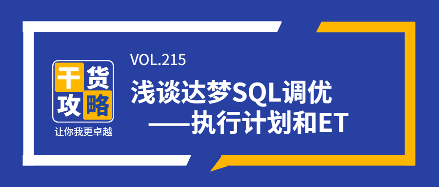 在达梦数据库中,可以查看需要调整的SQL的执行计划并结合ET进行分析,来帮助寻找代价多的计划节点和操作符,指导我们进行SQL的优化。