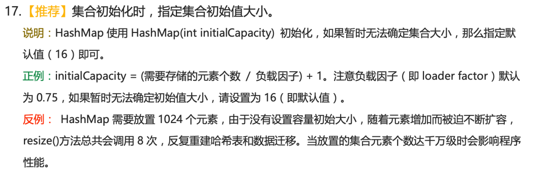 初始值大小计算可以参考《阿里巴巴开发手册》:
