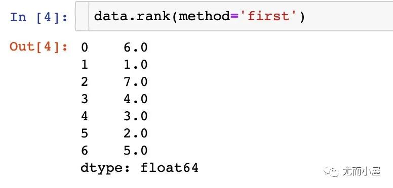 first:直接根据数值的大小顺序进行排名 average:表示的是,如果两个数值相同,排名是它们的均值