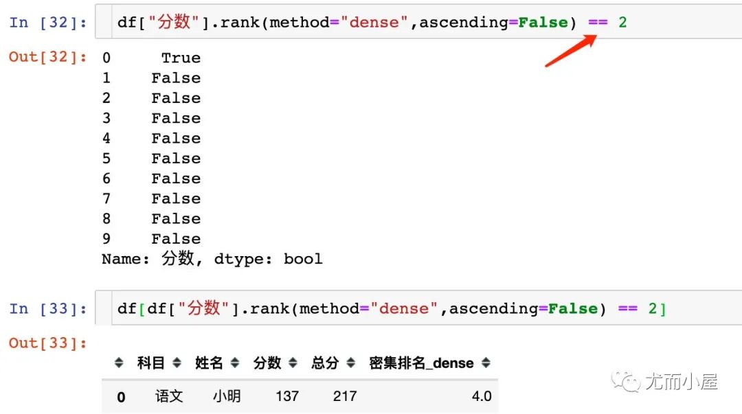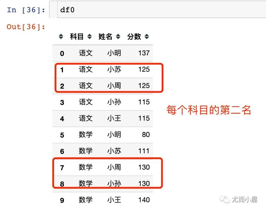 return x[x["分数"].rank(method="dense",ascending=False) == 2]