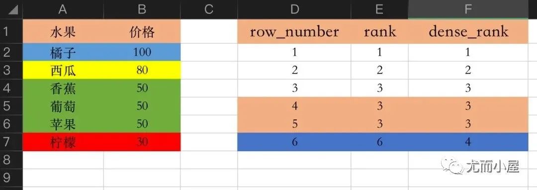 讲解完rank函数的使用,可以和SQL中的窗口函数进行类比: