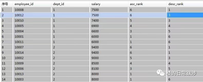 dense_rank函数的功能与rank函数类似,dense_rank函数在生成序号时是连续的,而rank函数生成的序号有可能不连续。dense_rank函数出现相同排名时,将不跳过相同排名号,rank值紧接上一次的rank值。在各个分组内,rank()是跳跃排序,有两个第一名时接下来就是第三名,dense_rank()是连续排序,有两个第一名时仍然跟着第二名。