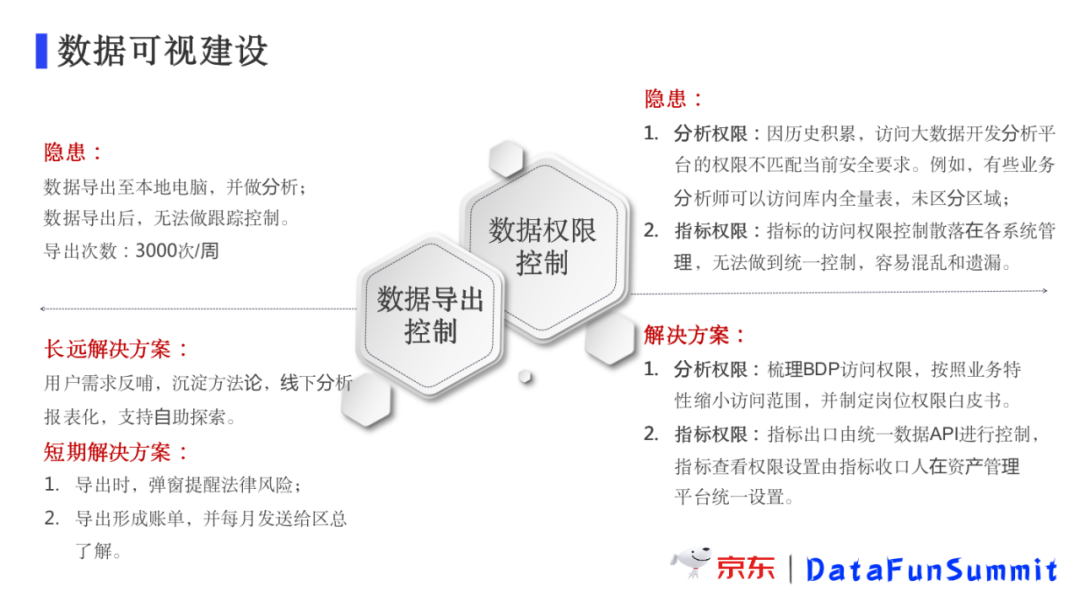 分析权限:因历史积累,访问大数据开发分析平台的权限不匹配当前安全要求。例如,有些业务分析师可以访问库内全量表,未区分区域;