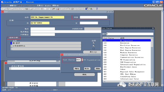 系统的HR组织设置是与HRM模块的相关业务处理功能相关,与核心业务/财务处理功能关系不大,主要是需要注意其是否和“成本中心”关联,需要时可以输入“成本中心”代码,其LOV就是“会计科目弹性域”结构中成本中心段的值集。如下图30所示: