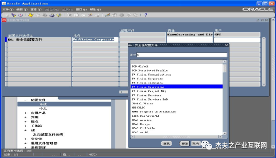 上图所定义“安全性配置文件”是系统用以控制包括“组织安全性”等在内的各种安全性控制的基础,它具体规定了系统安全性控制的范围与实现方式,所有定义的“安全性配置文件”Name构成系统多组织接入控制参数“MO:安全性配置文件”的LOV。如下图33所示: