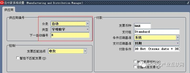 “供应商编号”具有唯一性且不可更新(系统的跟踪标识),可以手工输入,也可以由系统自动生成,具体是那种方式由AP系统相关设置控制。这一点,R12与R11相比设置界面虽有所不同,但在多组织(OU)功能支持下,供应商的编号设定都是实现跨OU定义的,故其编号设置与OU无关。如图 4‑51所示的供应商编号设置(R12)。