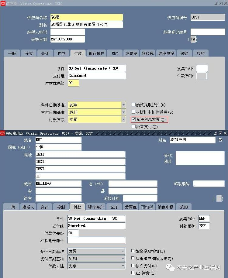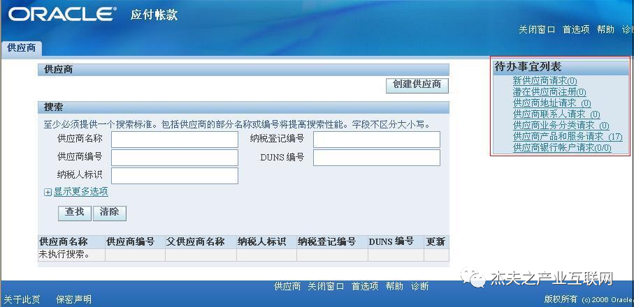 在EBS系统中,供应商的定义与维护是在AP模块而非PO模块中进行的。在AP模块中定义维护供应商,意味着即使没有或不使用PO模块,也可以在AP模块中对于需要向各种供应商进行付款的业务行为进行有效管理。EBS的AP模块定义的供应商主数据,将同时为PO模块、Asset资产模块、Property财产模块等所共享。
