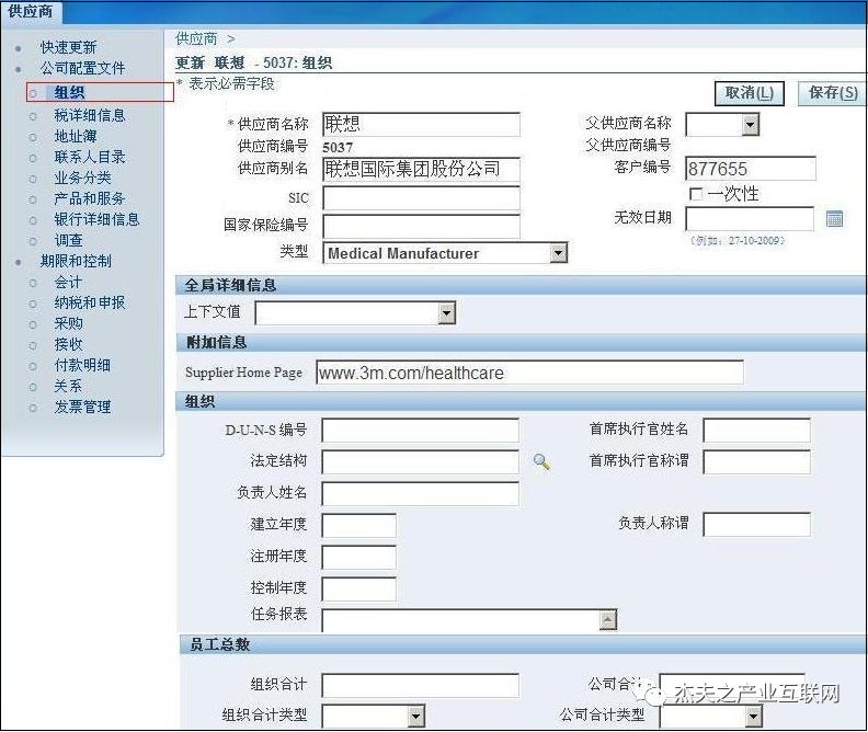按供应商提供的产品与服务的形态划分,则可以划分为“有形”实物类的供应商,与“无形”服务类的供应商;按供应商与所提供产品的关系,可以分为“制造商、代理商”;按供应商的组织形态划分,则可以划分为“公司供应商”与“个人供应商”(在EBS中,公司员工有时需要当作供应商来处理);按地域范围划分,则可以划分为“国内供应商与国外供应商”;按供应商所处生命周期或合作关系划分,则可以分为“潜在供应商、一次性供应商、试用供应商、长期合作供应商”等等。