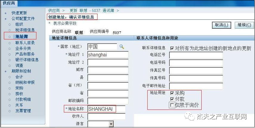 标准供应商与员工供应商的题头创建除了上述两种不同之外,其余的属性Tab页与R11相同,仍然是共用的。