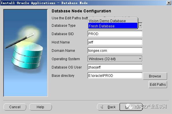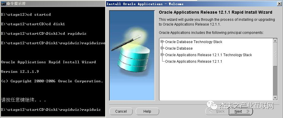 Install”,并去掉“Hide obsolete packages”的选定标志。注意:“全部下载的Cygwin安装包”与缩小的“EBS专用Cygwin安装包”显示内容会有所不同,两者均需保证全部条目的后缀都是“Install”而不能是“Default”。如下图06所示“EBS专用Cygwin安装包”的显示界面:在完成上述安装后,要将需实施替换的“gnumake.exe”拷贝到“D :\Cygwin\bin”之下(覆盖原文件)。如果使用的是“EBS专用Cygwin安装包”,则还需要在“D:\cygwin\bin”下分别copy出“gawk.exe、grep.exe、gcc.exe”这三个软件到另一个临时目录下,分别改名为“awk.exe、egrep.exe、cc.exe”,再copy回“D:\cygwin\bin”下,并覆盖替换原相关文件(如果是Cygwin软件的“全部”安装,则就无需进行这一步)。对于R11系统,如安装的是MKS Toollit 8.0软件,安装根目录可选择为“:\MKS”,安装后根据SN中的指示,将mkstk.dll拷贝到system32目录下,但会遇到无法直接拷贝的问题,需先将Windows的system32下原mkstk.dll的名称修改为mkstk1.dll,然后再拷贝安装文件SN下的mkstk.dll。完成安装后,也需要将实施替换的“gnumake.exe”拷贝到“:\MKS\mksnt”之下(覆盖原文件)。通常电脑都有一个或多个固定网卡。但由于ORACLE系统的安装,以及安装之后的使用都要求网卡处于“连接”网络状态,在使用“便携机”或无法连接网络时,将导致ORACLE系统无法启动,使用不方便,故建议为机器设置一个“虚拟网卡”,以便以后在任何“移动”状态下都可以使用ORACLE系统。为机器设置“虚拟网卡”的方式如下:在Windows的“控制面板”中点击“添加硬件”,然后回答“是,硬件已连接好”,系统将搜索所有已经安装的“硬件”并列表显示,移动到列表显示的最后一行“添加新的硬件设备”如下图07所示:然后,在“下一步”打开的界面中选择“安装我手动从列表中选择的硬件”,再从“显示所有设备”中选择“网络适配器”。再在“下一步”打开的“选择网卡”显示界面中选择“Microsoft—Microsoft Loopback Adapter”,如下图08所示:无论是使用“固定(无线)网卡”,还是“虚拟网卡”,均需要为之设置一个固定的IP地址,如下图09所示:上图中,基于测试需要可以输入任意的IP值,DNS后缀也可以任意输入一个如“tongee.com”的域名值(注意,域名中不能有“—”链接符,否则安装会报错),只是需要注意后面的相关设置必须与这里的设置一致。若已经安装有多个网卡(包括虚拟网卡),则IP值无法重复,需要分别为每个网卡设置一个在“0-256之间的任意值”。在计算机系统属性中,为当前计算机设置“名称”及DNS后缀,如下图10所示:在路径“D:\windows\system32\drivers\etc”下找到hosts,使用“记事本”程序打开,添加相关IP地址及域名值,如下图11所示:上图中,如果具有多个不同IP地址的网卡,则最好全部设置进去,以便将来根据需要切换使用。但在以后ORACLE系统启动时,必须保证原安装时所使用的“IP地址”所关联的“网卡”处于“连接网络”状态(可以通过改变网卡的原分配IP地址来实现)。ORACLE系统的安装要求当前进入Windows系统的用户必须具有“管理员(Administrator)”权限,如下图12所示:注意,如果新建了系统用户,并为之“添加”了管理员(隶属于“Administrators”)权限,最好退出Windows并重新启动,然后以具有“管理员”权限的系统用户重新进入。(该用户在安装ORACLE系统之后,会自动添加隶属于“ora_dba”组,从而具有后台数据库的操作权限)。由于ORACLE系统的安装会检查“打印机”是否存在,故在没有实际打印机的情况下,可以添加一个“虚拟打印机”。如下图13所示:上图中,选择“打印到文件”,然后在接下来的界面中任意选择一个打印程序,然后再给此“虚拟打印机”任意起个名字并设置为默认“打印机”。在“系统属性”中打开“环境变量”界面,在“系统变量”选中变量名“Path”,然后在其中添加“:\cygwin\bin”,不同值之间可用“;”隔开。(注意不要随便修改、删除其它变量及路径名)。如下图14所示:如果安装的是R11系统(使用MKS Toollit 8.0),则应检查“系统变量”的变量名“Path”之下是否已经存在“:\MKS\mksnt”。至于系统属性中的“虚拟内存”设置,则应当设定要比实际的内存为大(通常为1.5倍比较适合),否则ORACLE系统安装在最后阶段可能会提示虚拟内存太小,导致某些程序不能正常运行。特别提醒:在启动安装之前,建议备份系统当前“注册表”,或使用Windows系统的“备份”功能将“Windows、Cygwin、VC”等根目录的内容备份保存,以方便在安装失败或在以后有必要重装系统时,可以很快还原到最初始的系统状态。ORACLE EBS的Rapidinstall安装功能是一个自动化的快速安装过程,它将EBS套件所包含的全部功能模块(无论实际系统实施是否需要立即启用)作为一个整体,一次性全部安装进系统。企业在未来的实际信息化发展过程中,随着业务需求的不断扩展与升级,可以通过逐步“启用”新的业务模块(仅需必要的系统模块设置),来达到应用系统扩展与升级的目的,而无需进行新的系统模块安装。(注意,R12与R11的安装导航界面略有不同,以下仅以R12系统的安装为例作说明)Rapidinstall安装需要在DOS命令状态下进行。注意,在以后的安装过程中DOS命令窗口不能关闭,否则安装过程会中断。在“stage12 \startCD \Disk1\rapidwiz”下,运行“rapidwiz.cmd”命令将启动安装,系统将首先显示“安装导航”界面。如下图15所示:“NEXT”到“第二个页面”提供有关说明信息,“第三