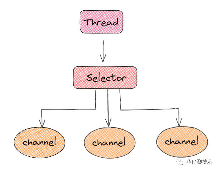 Selector 允许单线程处理多个 Channel。使用 Selector,首先得向Selector 注册 Channel,然后调用它的 select() 方法。此方法会一直阻塞到某个注册的 Channel 有事件就绪。一旦这个方法返回,线程就可以处理这些事件,事件的例子如新连接进来,数据接收等