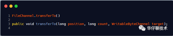 transferTo() 方法会将数据从文件通道传输到了给定的可写字节通道。在其内部它依赖底层操作系统对零拷贝的支持;在 Linux 系统中,此调用被传递到 sendfile() 系统调用中,调用过程如下: