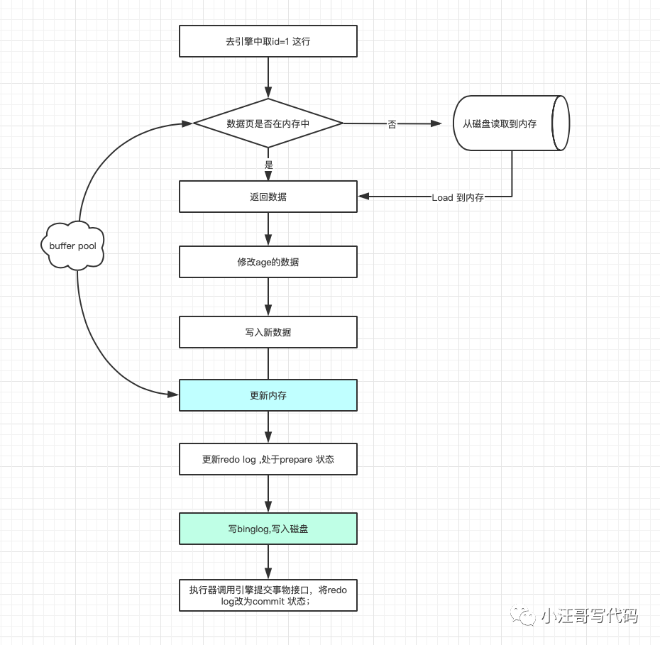 读数据:会首先从缓冲池中读取,如果缓冲池中没有,则从磁盘读取在放入缓冲池;