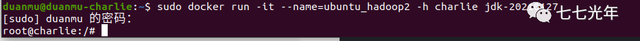 docker run -it --name=ubuntu_hadoop -h charlie jdk-20210127