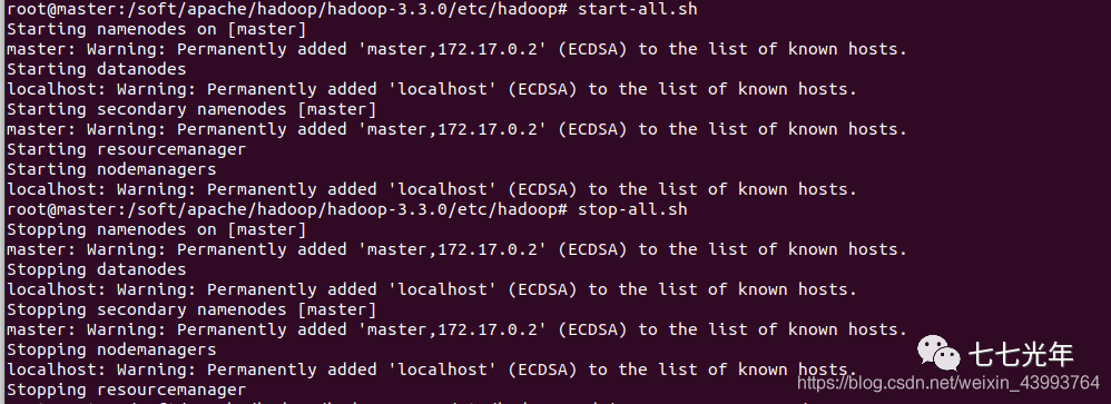 docker run -it -h master --name=master -p 9870:9870 -p 8088:8088 ubuntu:hadoop