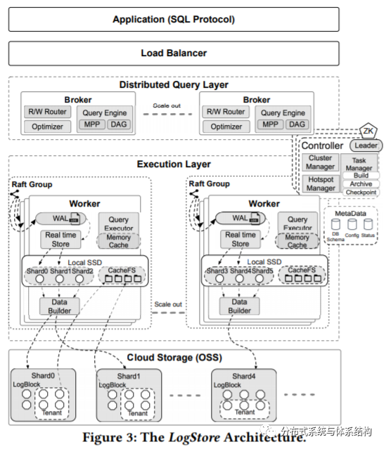 LogStore主要包括以下关键组件:Controller、Query Layer、Execution Layer。