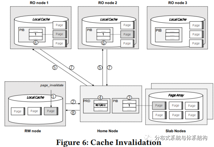 · Page Invalidation Bitmap(PIB)是一个bitmap,0表示该page是最新的版本,1表示RWnode还没有将脏数据写回。在每个RO node上,也有PIB,用来指示在本地cache中的page是否过期;