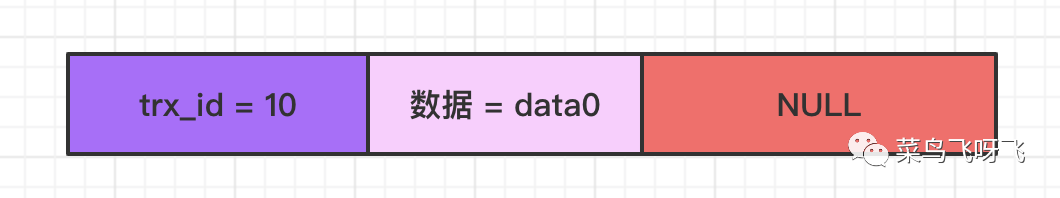 假设现有一条数据,它的 row_trx_id=10,数据的值为 data0,它的 roll_pointer 指针为 null。