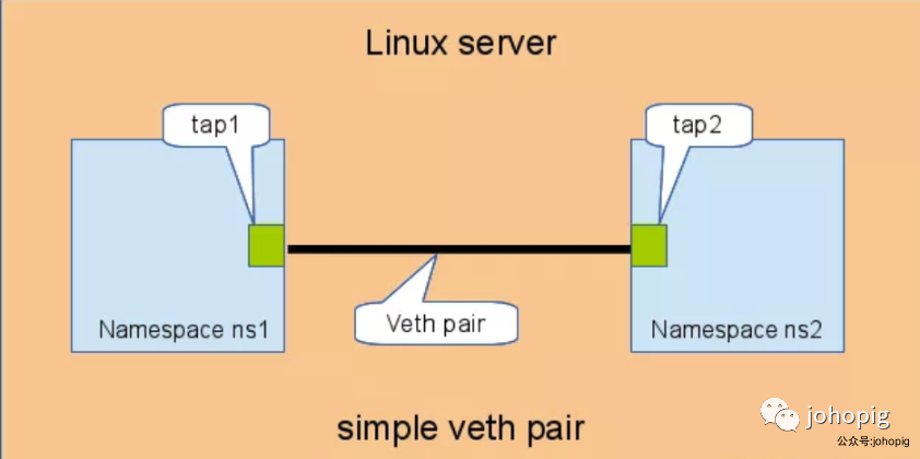 它的这个特性常常用来连接不同的虚拟网络组件,构建大规模的虚拟网络拓扑,比如连接 Linux Bridge、OVS、LXC 容器等。