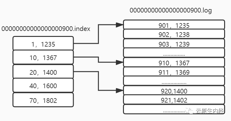 首先会根据 offset 值去查找 Segment 中的 index 文件,因为 index 文件是以上个文件的最大 offset 偏移命名的所以可以通过二分法快速定位到索引文件。 找到索引文件后,索引文件中保存的是 offset 和对应的消息行在 log 日志中的存储行号,因为 Kafka 采用稀疏矩阵的方式来存储索引信息,并不是每一条索引都存储,所以这里只是查到文件中符合当前 offset 范围的索引。 拿到 当前查到的范围索引对应的行号之后再去对应的 log 文件中从 当前 Position 位置开始查找 offset 对应的消息,直到找到该 offset 为止。