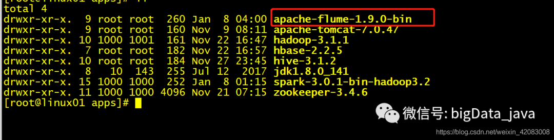 将flume的安装包上传到linux01上之后,解压到/opt/apps下面