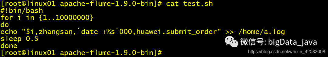 为了制造新产生的数据,我写了个脚本,并输出到/home/a.log 中